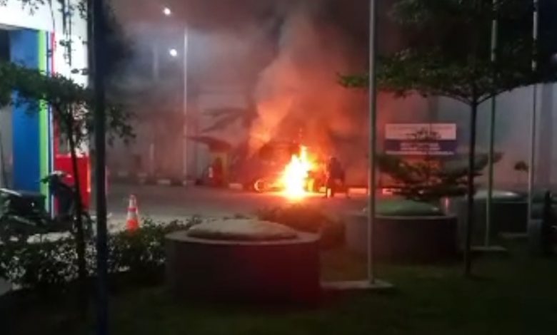 Satu Unit mobil Carry terbakar di Stasiun Pengisian Bahan Bakar Umum (SPBU) Kojengkang Desa Licin Kecamatan Cimalaka Kabupaten Sumedang, pada Hari Kamis (27/7), sekira Jam 18.39 WIB.