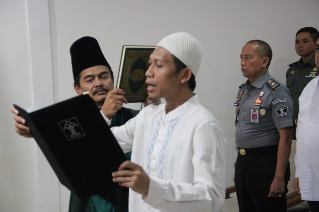 TAHUEKSPRES, SUMEDANG – Seorang Narapidana Tindak Pidana Terorisme (Napiter) bernama Barkahadi Kusnandar alias Abu Uwais alias Benkz bin Iding Sutisna warga Tasikmalaya Jawa Barat (Jabar) telah menyatakan ikrar setia terhadap Negara Kesatuan Republik Indonesia (NKRI) di Lapas Kelas II B Sumedang Jln. Prabu Geusan Ulun Sumedang Jawa Barat (Jabar), Senin (5/2/2024).