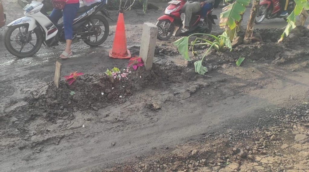 Makam dadakan yang dibuat oleh warga setempat itu, bukanlah makan asli sebagaimana pada umumnya. Tapi ini adalah bentuk protes warga karena jalan yang ada sangat parah kondisinya.