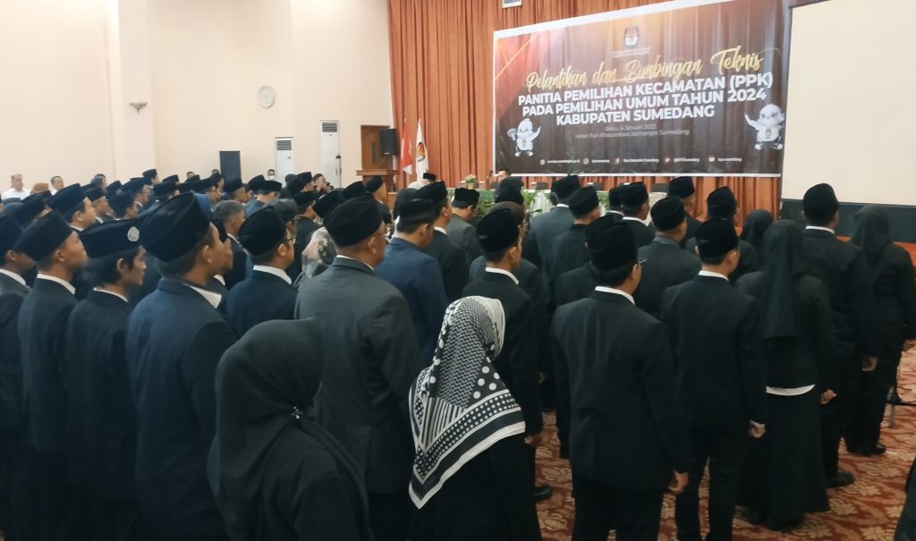 TAHUEKSPRES, SUMEDANG – Komisi Pemilihan Umum (KPU) Kabupaten Sumedang resmi melantik 130 anggota Panitia Pemilihan Kecamatan (PPK) dari 26 Kecamatan yang disaksikan langsung oleh Pejabat Forkopimda Kabupaten Sumedang di Hotel Puri Khatulistiwa Jatinangor Sumedang Jawa Barat (Jabar), Rabu (4/1/2023).