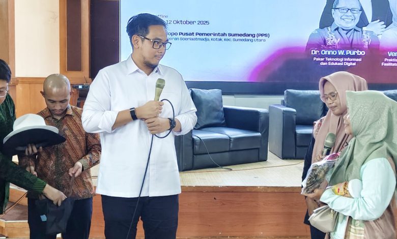 Kegiatan tersebut merupakan bagian dari Artificial Intelligence Training Road Show to Sumedang yang turut menghadirkan pakar teknologi informasi, Dr. Onno W. Purbo. Selain diskusi panel, kegiatan ini juga dilanjutkan dengan pelatihan teknis penggunaan AI bagi pelaku UMKM pada Minggu (12/10/2025).