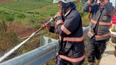 Lahan di Tol Cisumdawu Sumedang Terbakar, Damkar Tanjungsari Sigap Padamkan Api