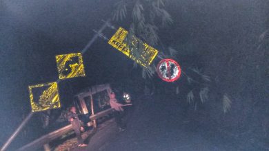 Hujan Disertai Angin Kencang Robohkan Rambu Lalu Lintas di Rancakalong