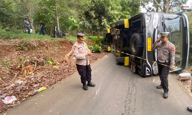 Tak ada Korban Jiwa Dalam Kecelakaan Bus Terguling di Buper Kiara Payung Sumedang