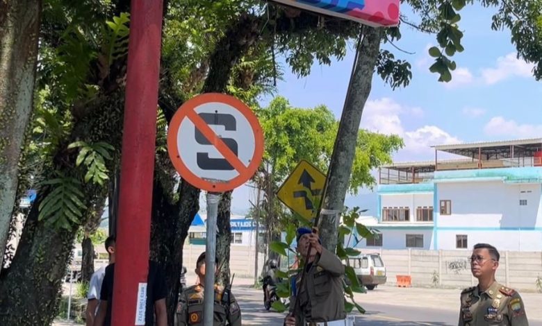 Sumedang – Satuan Polisi Pamong Praja (Satpol PP) Kabupaten Sumedang menertibkan sejumlah reklame yang tidak berizin, tidak membayar pajak, serta memuat pesan yang bertentangan dengan Peraturan Daerah (Perda). Penertiban dilakukan di beberapa titik wilayah Tanjungsari pada Selasa (7/10/2025).