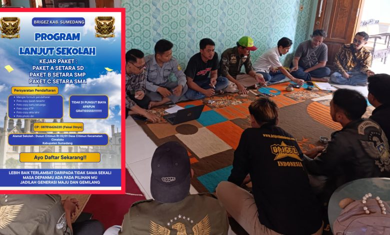 Sumedang – Dewan Pimpinan Wilayah (DPW) BRIGEZ Kabupaten Sumedang menginisiasi langkah nyata dalam dunia pendidikan. Organisasi ini resmi membuka program Lanjut Sekolah Paket ABC guna menekan angka putus sekolah, baik di internal organisasi maupun masyarakat umum di Kabupaten Sumedang.