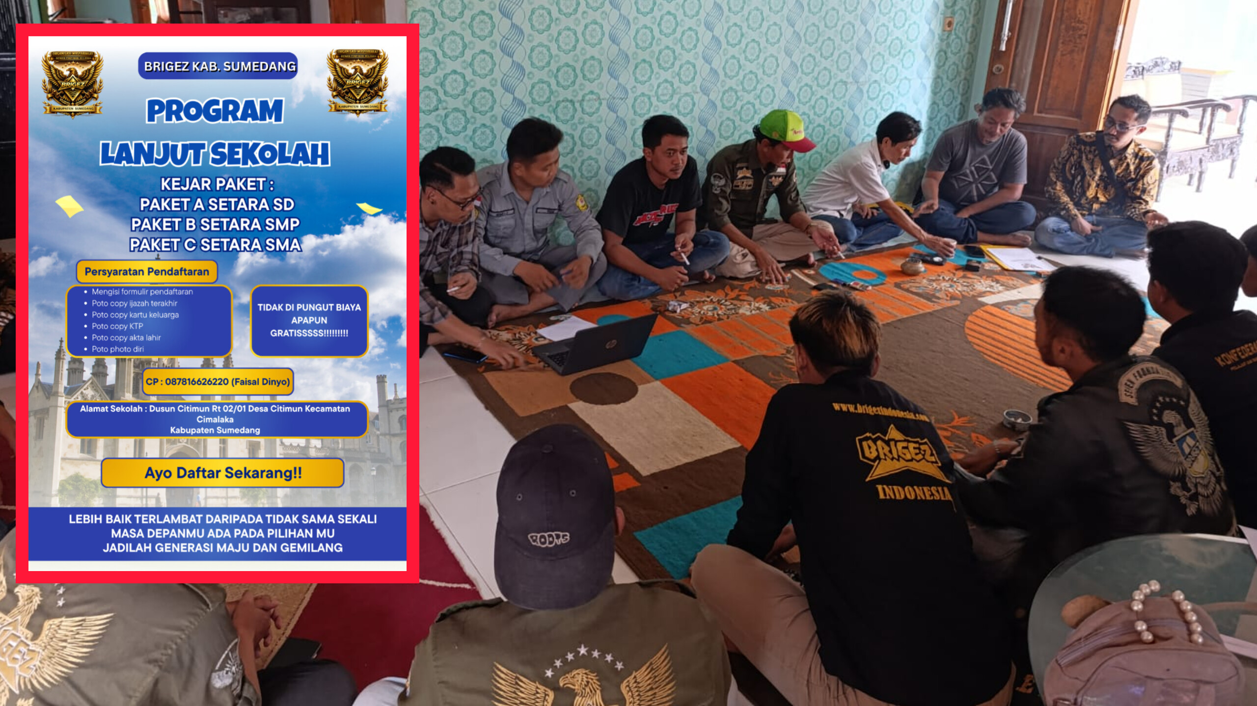Sumedang – Dewan Pimpinan Wilayah (DPW) BRIGEZ Kabupaten Sumedang menginisiasi langkah nyata dalam dunia pendidikan. Organisasi ini resmi membuka program Lanjut Sekolah Paket ABC guna menekan angka putus sekolah, baik di internal organisasi maupun masyarakat umum di Kabupaten Sumedang.