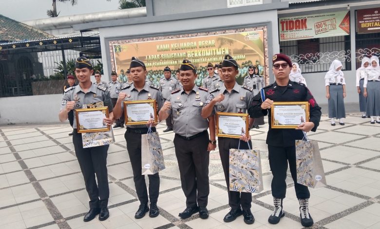 TAHUEKSPRES, SUMEDANG – Untuk meningkatkan kinerja dan kewaspadaan, 4 petugas Lapas Kelas II B Sumedang diberi penghargaan oleh Kalapas Kelas II B Sumedang sebagai apresiasi atas aksi heroik mereka bersama pelajar Sumedang dalam menangkap tahanan yang kabur.