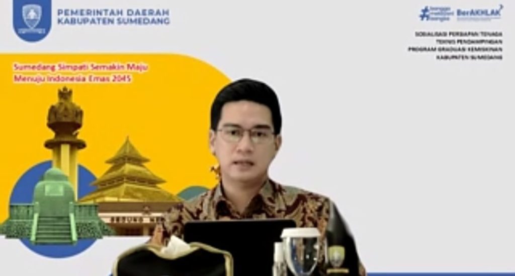 Sumedang – Wakil Bupati Sumedang, M. Fajar Aldila, membuka Sosialisasi Persiapan Tenaga Teknis Pendampingan Program Graduasi Kemiskinan Kabupaten Sumedang Tahun 2025 secara virtual, Kamis (4/9/2025). Kegiatan ini diikuti pendamping sosial PKH, Tenaga Kesejahteraan Sosial Kecamatan (TKSK), pendamping desa, pendamping keluarga, pendamping UMKM, penyuluh pertanian, hingga pendamping peternakan se-Kabupaten Sumedang.